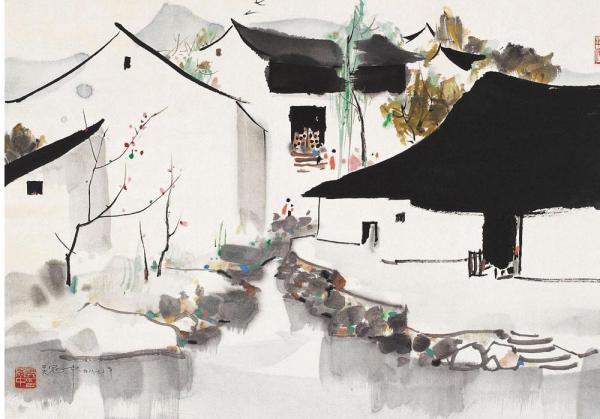 在滿足了基本需求后,孟浩凡才開始考慮,如何為這座古鎮(zhèn)保留傳統(tǒng)江南民居的神韻,又體現(xiàn)出現(xiàn)代學(xué)的美感和創(chuàng)意。他想到了畫家吳冠中。孟浩凡說,比起具象的元素,他更多考慮的是保留“氣質(zhì)”?!氨热缯f你看這色調(diào),色調(diào)是白墻綠瓦,中間有一些灰色系的這種磚,都是老色調(diào)的基底給我們的感覺。這種壓頂?shù)木€條,像吳冠中的畫,都是很抽象的嘛。畫江南民居,他畫出來很抽象的藝術(shù)畫,沒有具象的符號,但是你一看這個東西它就是江南的,因為屋頂?shù)倪@種曲線、線條,勾勒出了江南的這種俊秀?!?/p>