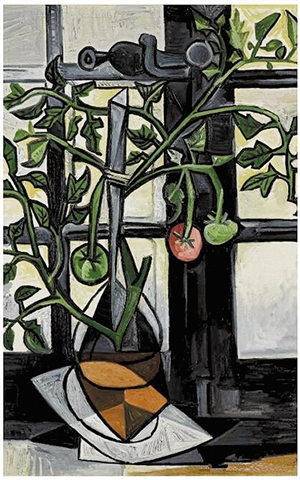 1944年夏天,畢加索與情人瑪麗·特雷斯生活在還處于納粹占領(lǐng)中的法國(guó)巴黎,有一天,他為家中窗臺(tái)上的番茄植物畫了一幅靜物,既反映了當(dāng)時(shí)食物緊缺、人們不得不自己種植農(nóng)產(chǎn)品的現(xiàn)實(shí),同時(shí)還以富有生機(jī)的色彩和成熟果實(shí)的意向表達(dá)了人們強(qiáng)烈的意志力。那個(gè)時(shí)候,番茄是這座城市窗臺(tái)和陽(yáng)臺(tái)上最常見(jiàn)的東西。