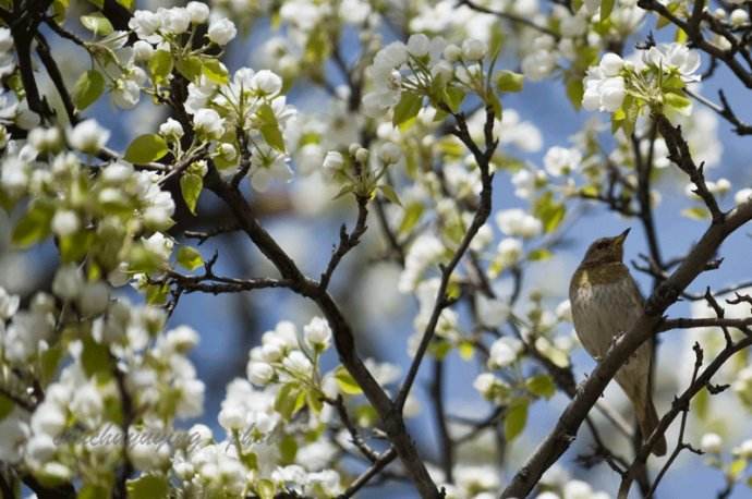 桃樹、杏樹、梨樹,你不讓我,我不讓你,都開滿了花趕趟兒。紅的像火,粉的像霞,白的像雪?;ɡ飵е鹞秲?;閉了眼,樹上仿佛已經(jīng)滿是桃兒、杏兒、梨兒。花下成千成百的蜜蜂嗡嗡地鬧著,大小的蝴蝶飛來飛去。野花遍地是:雜樣兒,有名字的,沒名字的,散在草叢里,像眼睛,像星星,還眨呀眨的。