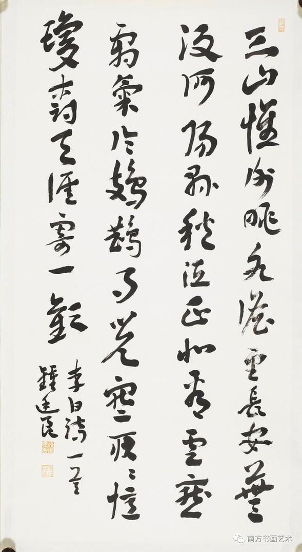 鐘廷良少年時期在外公的指導(dǎo)下學(xué)習(xí)傳統(tǒng)文化,同時學(xué)習(xí)書法和書畫鑒賞。其時碑帖讀本稀缺,便從鄉(xiāng)賢處請教受益。及至青年時期(上世紀(jì)九十年代),開始接觸晉、唐、宋、元、明、清名帖,方始涉獵顏真卿、米芾、黃庭堅及清人王鐸。然未得法,故面目凌亂。及至新世紀(jì)千禧年后(二000年后)才逐漸探求《月儀章》、《急就章》等章草法帖,再參近現(xiàn)代沈曾植、王蘧常等家藏作品后,結(jié)字漸有起色。其間,也苦臨《散氏盤》《石鼓文》《城隍廟記》《袁安碑》等篆籀名刻。