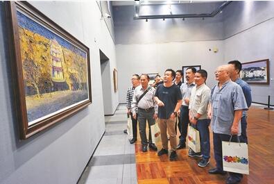 ▲油畫作品展吸引眾多愛好者前來參觀。通訊員 冼余漢 攝