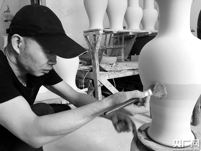 王曉峰:每道工序都不能大意,還要有點運氣,突然間天上飄來一朵云,氣里或者是哪里落了一點鐵質(zhì)在上面,你沒辦法。所以我們景德鎮(zhèn)傳統(tǒng)藝人里邊有一句老話,泥塑火燒的東西誰能保得到,萬里無云是很難的事情。但是我個人覺得可能我們就得做萬里無云的東西。