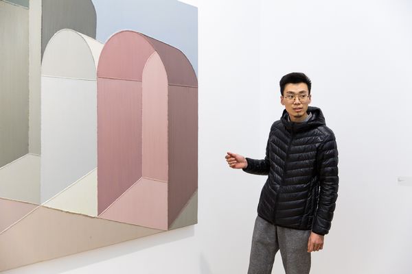 藝術家趙新宇,1989年出生于內(nèi)蒙古,2012年畢業(yè)于四川美術學院油畫系。趙新宇最早的創(chuàng)作,即為人所知的“車廂”系列,涉及了一種日常經(jīng)驗,后續(xù)階段的作品以情緒性和敘事性為底色,而使得整個畫面頗具戲劇色彩。在新作當中,這一痕跡的延伸則是趙新宇似乎試圖通過對畫面結構的編排,對比之前的作品,依舊是在構景,但卻在逐漸在取締物的現(xiàn)實性因素。新作當中技法的轉變,厚涂式的平推僅保留了一部分,新作當中的轉向在某種程度上僅僅構成了對于厚涂畫法的一個對立面發(fā)生,像是一次新的開場,畫面本體基本問題再次噴涌而來,在這一情形下,趙新宇通過對于框架結構式描繪的轉向,試圖引向一種對于畫面心理的感知。