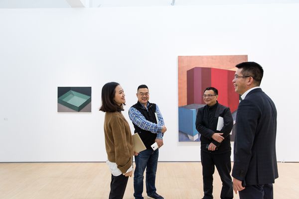 展覽現(xiàn)場蜂巢當代藝術中心館長夏季風與嘉賓就作品進行交流