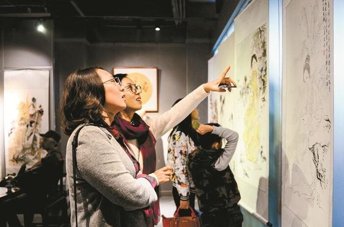 記者在現(xiàn)場看到,展覽精品匯萃不斷,內(nèi)容豐富,既有山水畫又有人物畫,也涵蓋了工筆、寫意、花鳥多種類型,集中呈現(xiàn)了戴培仁師生的藝術(shù)水平與藝術(shù)追求。
