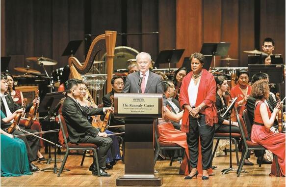 美國當地時間2月15日,在首都華盛頓肯尼迪藝術中心,深圳交響樂團首席客席指揮譚盾執(zhí)棒,率小提琴家朱丹、大提琴家聶佳鵬、鋼琴家吳聿敏、嗩吶演奏家劉雯雯以及深交多位演奏家,為美國觀眾送上中國新春音樂會。中西合璧的美妙音樂,世界語言講述的中國故事,不僅獲得中國駐美大使崔天凱點贊,也令當地觀眾久久沉醉。