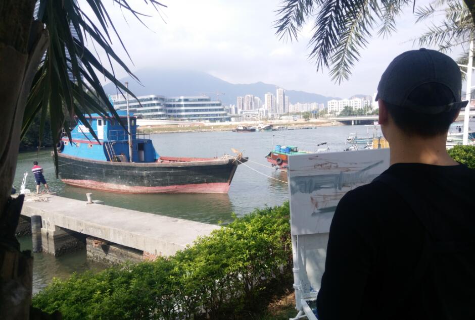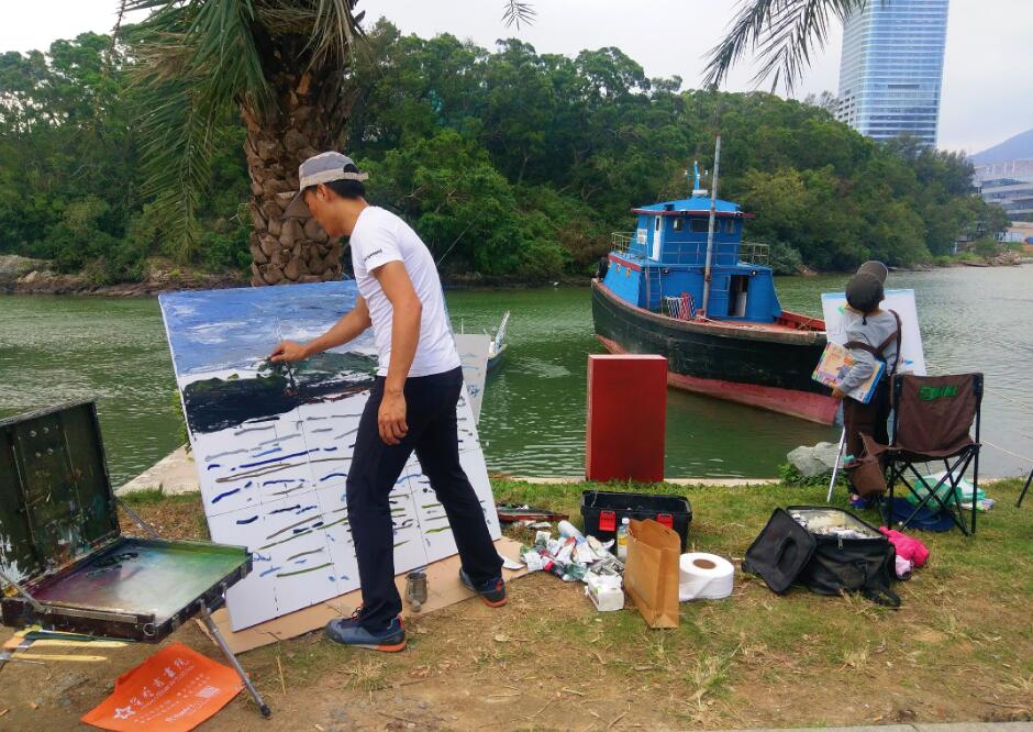 優(yōu)美的景色映入畫家們眼簾,點(diǎn)燃了他們的創(chuàng)作激情。來(lái)到鹽田之后,藝術(shù)家們紛紛找好寫生地點(diǎn),擺好畫架,迅速進(jìn)入創(chuàng)作的狀態(tài)。他們當(dāng)中一部分來(lái)到了鹽田漁港,鹽田海鮮街后的小漁村避風(fēng)港。蔚藍(lán)的大海、旁邊的綠樹、避風(fēng)塘內(nèi)停泊的船只、白色的海鳥、釣魚的人以及遠(yuǎn)方火熱的建設(shè)場(chǎng)景都呈現(xiàn)在畫家的筆端;另一部分藝術(shù)家來(lái)到了位于三洲田深圳會(huì)計(jì)進(jìn)修學(xué)院的梧桐溪谷,小橋流水人家、奇石山林則一一被傾注于畫紙。