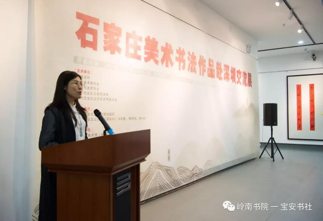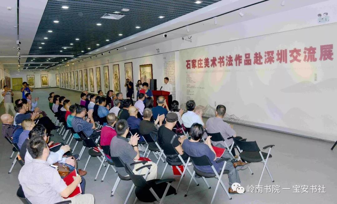 2018年11月8日下午15:00,由石家莊市文化廣電新聞出版局、深圳市寶安區(qū)公共文化服務(wù)中心(文化館、博物館、美術(shù)館)主辦,石家莊市美術(shù)館(市畫(huà)院)、嶺南書(shū)院、深圳寶安書(shū)法藝術(shù)研究社承辦,深圳市寶安區(qū)圖書(shū)館、寶安區(qū)美協(xié)、寶安區(qū)書(shū)協(xié)協(xié)辦并得到深圳市書(shū)法家協(xié)會(huì)、美術(shù)家協(xié)會(huì)、寶安區(qū)文體旅游局、寶安區(qū)文聯(lián)的大力支的 “ 石家莊美術(shù)書(shū)法作品赴深圳交流展 ” 在深圳市寶安區(qū)圖書(shū)館負(fù)一樓展廳隆重開(kāi)幕——