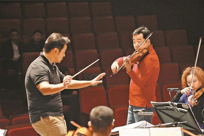 越往后,越是高潮迭起。在接近尾聲時(shí),林大葉營(yíng)造出奇特效果。還在排練時(shí),他就充分發(fā)掘樂隊(duì)每一位演奏員的內(nèi)在潛力。他讓他們動(dòng)起來(lái),舞起來(lái),晃起來(lái),也狂起來(lái)。在壓軸的佩雷斯·普拉多《曼博舞》中,他讓臺(tái)上人人忘情,人人癡迷,那是開心旋風(fēng)猛烈刮起的時(shí)刻。性格開朗的大提琴手毛澄宇多才多藝,指揮沖她一點(diǎn):你不是會(huì)跳舞嗎?她就立刻放下大提琴,以現(xiàn)代時(shí)尚年輕人的最炫舞步,浪漫舞出,直逼指揮臺(tái)前,竟與林大葉對(duì)舞起來(lái)。首席張景婷也起身配合,隨著毛澄宇的搖擺舞姿,小提琴在波峰浪谷中釋放魅力。