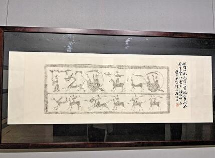 整個(gè)展覽分為“集印為詩(shī)”“詩(shī)意丹青”“我拓我家”三個(gè)主題板塊。以書法、拓片、山水畫等形式,豐富立體地展示了侯家三人多年來(lái)的藝術(shù)創(chuàng)作歷程。其中,“集印為詩(shī)”主要展現(xiàn)了侯軍多年來(lái)用收集的印章印文組合創(chuàng)作而成的一首首詩(shī)詞,以及諸位書家創(chuàng)作的詩(shī)書畫印作品?!拔彝匚壹摇眲t主要呈現(xiàn)了侯軍夫人李瑾平日以家為主題創(chuàng)作的傳拓作品,其中大部分皆由各地著名書畫家題跋或配畫,形式新穎,雅俗共賞。據(jù)了解,李瑾鐘情于傳統(tǒng)書畫,喜愛(ài)戲曲及民間剪紙,尤其喜歡傳拓藝術(shù)。在“詩(shī)意丹青”主題中,則集中展示了侯軍女兒侯悅斯所創(chuàng)作的優(yōu)美詩(shī)詞,并由畫家田耘、書法家朱德玲等以詩(shī)詞為題,創(chuàng)作書畫作品,構(gòu)成詩(shī)書畫印相交融的藝術(shù)呈現(xiàn)。