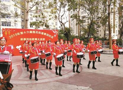 景華社區(qū)民俗歌舞大巡游活動(dòng)包括各式各樣的民族舞蹈、大合唱、古箏、手風(fēng)琴等表演。今年的民間色彩更加濃厚,節(jié)目全部由社區(qū)居民自編自演,大朋友小朋友齊參與,現(xiàn)場吸引了近數(shù)百居民前來觀看。歌舞展演結(jié)束后,由13支表演隊(duì)伍的演員組成巡游隊(duì)沿著景田路、蓮花路、商報(bào)東路進(jìn)行巡游,圍觀的居民朋友紛紛加入巡游隊(duì)伍里,營造和諧、濃厚的轄區(qū)文化氛圍。
