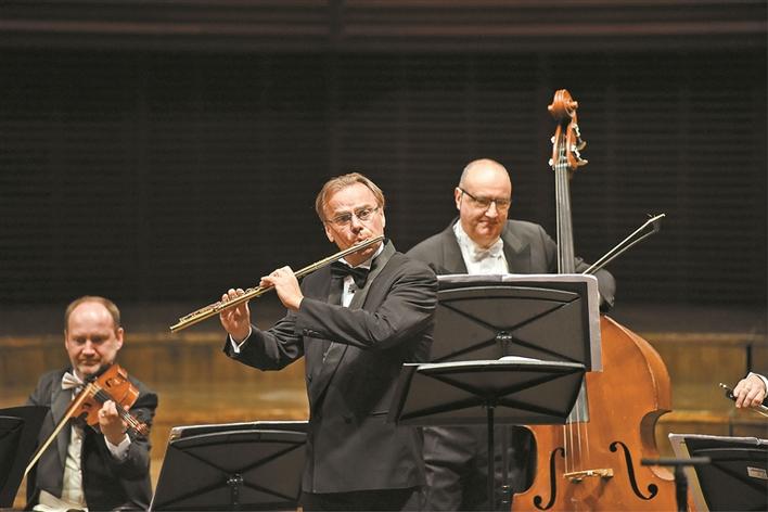 長笛大師安德烈· 格里米內利與意大利愛樂獨奏家室內樂團音樂會。 深圳特區(qū)報記者 胡蕾 攝