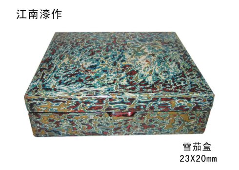 犀皮漆,又稱犀皮、西皮、虎皮漆,此技法起于唐朝,在宋朝時十分流行。羅氏犀皮漆器是我國古代數(shù)百種髹飾漆藝中獨具特色的一種,是傳統(tǒng)的髹飾漆藝在臨海的遺存。從元、明至清道光年間,臨海犀皮髹漆工藝盛極一時。羅氏犀皮漆藝以紅、黑、黃數(shù)色互換融入表面髹飾,以磨顯填漆、髹漆裝飾的一種傳統(tǒng)漆藝。犀皮漆器制作工藝繁瑣,周期長,需耗時六到八個月,分制胎,灰坯,制漆,設(shè)色,起紋,填漆,黍包漆,研磨,推光,揩清等十道工序。羅氏犀皮漆器現(xiàn)有三大類,三十多個品種,魔盒類有首飾裝飾盒;文房類有印鑒盒,筆洗,茶葉罐,漆盤,筆筒;碗具類有漆碗,漆盆等。