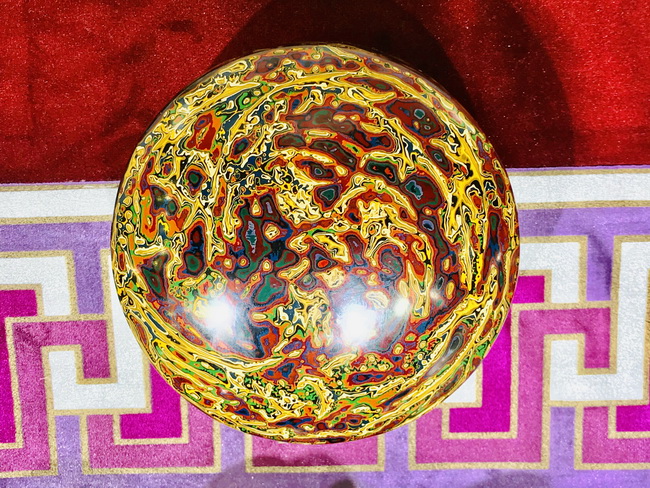 羅獻(xiàn)兵老師說,在進(jìn)行犀皮漆創(chuàng)作的時候,總是思緒縱橫,自然,生命,人生,河流、山川無不融入腦海,激蕩、滋養(yǎng)著漆藝的變化與創(chuàng)新。他在層層浸染中感悟漆藝之美,在遍遍涂髹中探尋愉悅?cè)松?。長時間的磨勵與實踐,博采眾長,師法自然,創(chuàng)作了一批唯美大氣、獨具匠心的漆藝作品,有些可謂是巧奪天工、天人合一的藝術(shù)品。他說,“犀皮藝術(shù),是關(guān)于心靈的藝術(shù),是關(guān)于人與自然關(guān)系的藝術(shù),是關(guān)于靈魂的藝術(shù)。這在當(dāng)代中國是缺失的。我希望通過漆樹汁這個比較獨特的自然材料,給人們提供一種思維的觀念,通過天然漆樹汁材料的運用,給人們提供一種認(rèn)識自然的角度。”正所謂:梅花香自苦寒來,功夫不負(fù)有人心。漸漸地,羅獻(xiàn)兵的名氣和犀皮漆品也從小小的臨海遍及神州大地,以至于世界華人文化圈。