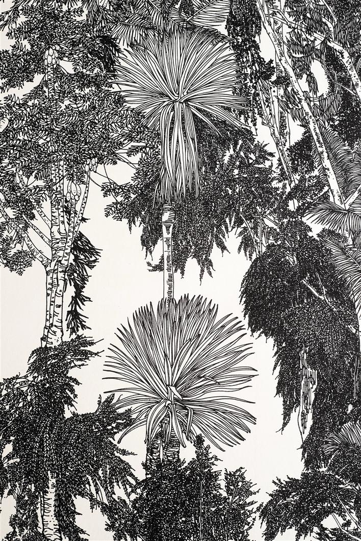 特別值得一提的是,展覽中很多作品都是難得一見的珍品,創(chuàng)作時間從上世紀(jì)60年代至今,時間跨度長達(dá)60年。其中有曾引起巨大轟動的北京機場壁畫《森林之歌》的創(chuàng)作草圖和工作稿;有年屆八旬的藝術(shù)家丁紹光2019年的最新作品《生生不息》的巨型線描圖;有分別從北京、寧波等地美術(shù)館借展的知名藝術(shù)家黃胄、賀友直畫作,一個是創(chuàng)作于上世紀(jì)70年代的速寫,一個是晚年畫作,都是極具代表性的經(jīng)典之作。