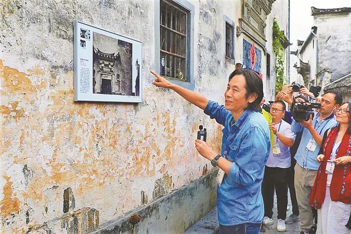 ▲2018年應天齊帶領嘉賓在“應天齊西遞村藝術館”觀摩畫展。