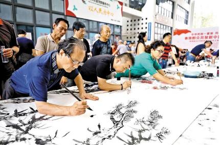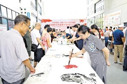 寶安日報(bào)2019年9月19日訊 9月18日下午,以“中華民族一家親,同心共筑中國夢——各族群眾共賀新中國成立70周年”為主題的書畫藝術(shù)筆會在龍華文化藝術(shù)中心舉行,80多位書畫名家現(xiàn)場揮毫,盡展中華民族文化藝術(shù)瑰寶魅力。