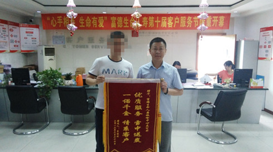 6月27日富德生命人壽鐵嶺中支迎來了一位特殊的客人,李先生的愛人雙手捧著“優(yōu)質服務、雪中送炭,一諾千金、情系客戶” 的錦旗,非常激動的說:“多虧有富德生命保險,使我們本來不富裕的家庭,在有難的時候,讓我們的生活有了保障,讓我愛人的后續(xù)治療有了保障,還是保險好。”