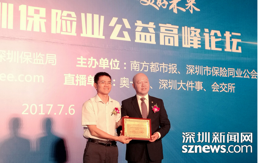 深圳新聞網(wǎng)訊 回歸風(fēng)險(xiǎn)保障,穩(wěn)固美好未來(lái)。7月6日,由深圳市金融辦、深圳保監(jiān)局指導(dǎo),深圳市保險(xiǎn)同業(yè)公會(huì)聯(lián)合南方都市報(bào)社共同舉辦的2017年深圳保險(xiǎn)業(yè)公益高峰論壇在福田召開(kāi),平安人壽深圳分公司榮獲“2017深圳保險(xiǎn)精準(zhǔn)扶貧功勛單位”稱號(hào),總經(jīng)理賴劍文獲“2017深圳保險(xiǎn)業(yè)愛(ài)心人物”獎(jiǎng)。