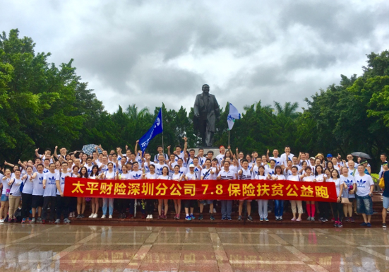 活動期間,深圳分公司積極組織員工參加公益跑活動,每日捐贈里程。7月8日當天,深圳分公司特別組織公司數(shù)百名員工至蓮花山公園開展“7.8公里扶貧公益跑”活動,縱使天降驟雨依然抵擋不住太平員工踐行公益的熱情,為雨中的公園增添了一道靚麗的“太平彩虹”。