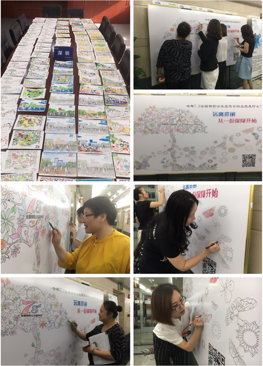 深圳分公司在職場大廳設(shè)置了填色墻,供員工及客戶共同上色,為生活添色彩。同時,深圳分公司面向廣大員工及客戶發(fā)放大量填色卡,舉辦填色贏獎品活動,深受民眾的喜愛與好評。
