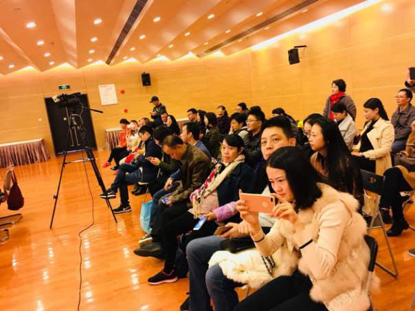 在復(fù)賽現(xiàn)場(chǎng)觀戰(zhàn)的家長們