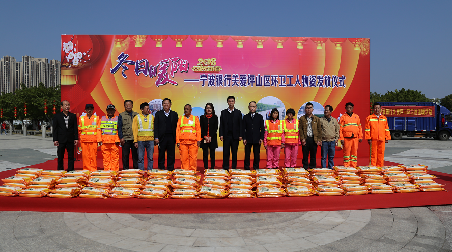 春節(jié)臨近,為了表達對環(huán)衛(wèi)工人的親切慰問,感謝他們一年來的辛勤付出,在坪山區(qū)城市管理局的推動,在寧波銀行深圳分行的支持下,舉行“冬日暖陽”寧波銀行關愛環(huán)衛(wèi)工人物資發(fā)放活動,坪山區(qū)委常委、區(qū)人民政府副區(qū)長、區(qū)政府黨組副書記代金濤同志及寧波銀行深圳分行副行長李紅波對環(huán)衛(wèi)工人致以深切慰問,向全坪山區(qū)環(huán)衛(wèi)工人約2500人發(fā)放大米;在維園餐飲管理有限公司及金龜露營小鎮(zhèn)的支持下,舉行了“情系環(huán)衛(wèi)工 益起行”活動,邀請了坪山區(qū)108位環(huán)衛(wèi)工人代表共進愛心團年飯,場面溫馨、熱鬧。