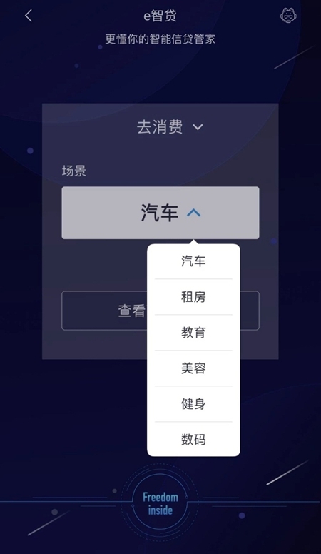 在客戶點(diǎn)擊e智貸后,F(xiàn)reedom還會(huì)根據(jù)客戶需求通過點(diǎn)擊「去消費(fèi)」就能推薦汽車、租房、教育、美容、健身、數(shù)碼等服務(wù),助力客戶開啟品質(zhì)生活。