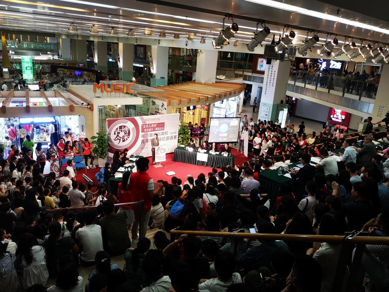 11月10日晚,“太平人壽杯”說古道今?博采眾長——第六屆深圳高校青年學(xué)子辯論邀請賽總決賽在深圳市中心書城北區(qū)階梯廣場舉辦。
