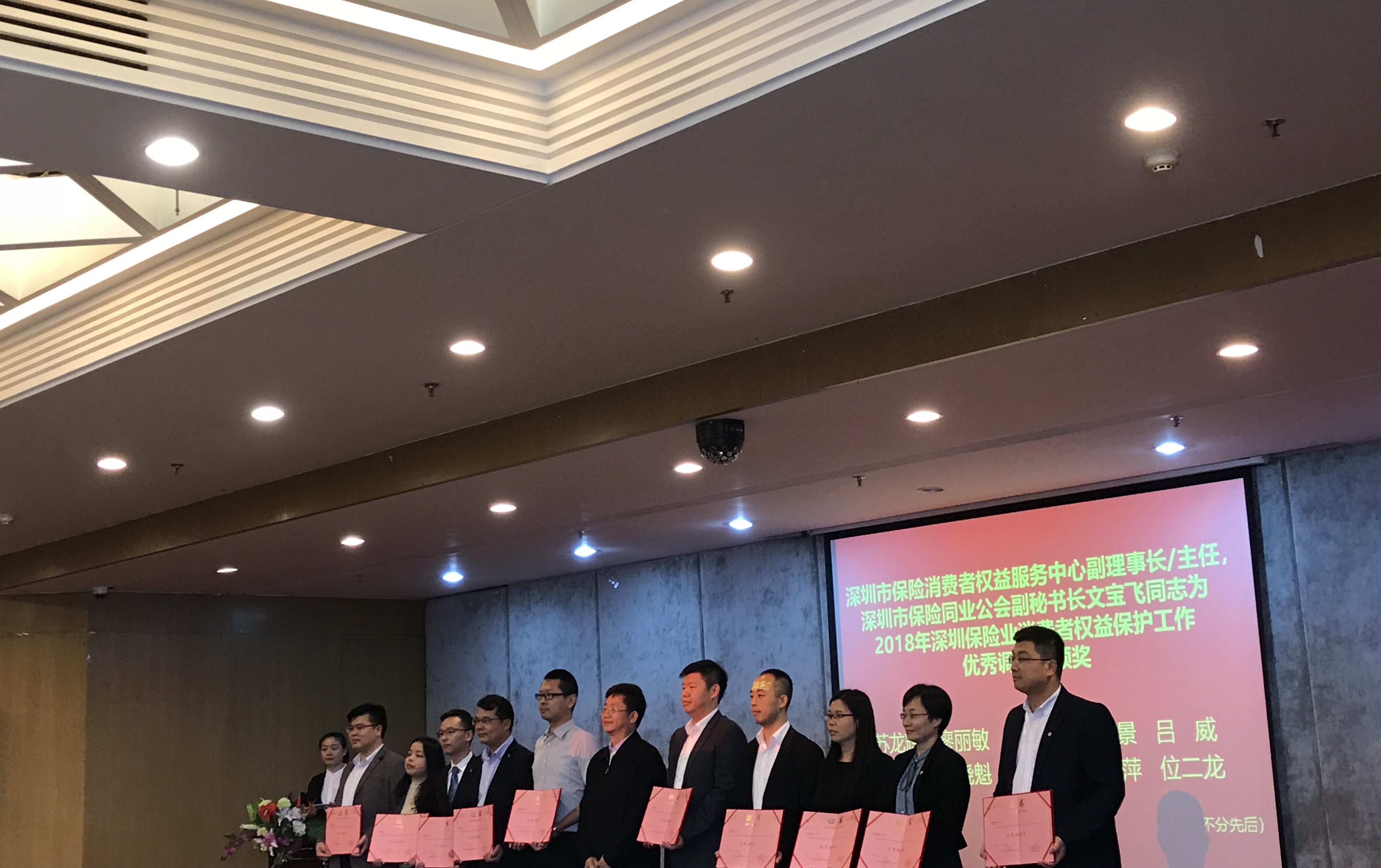 2018年12月26日,深圳保險業(yè)消費者權(quán)益保護工作年會(2018)暨培訓會議隆重舉行,太平財險深圳分公司榮獲深圳保險業(yè)消費者權(quán)益保護工作先進單位,深圳分公司法務崗韓曉魁榮獲深圳保險業(yè)消費者權(quán)益保護工作優(yōu)秀調(diào)解員。