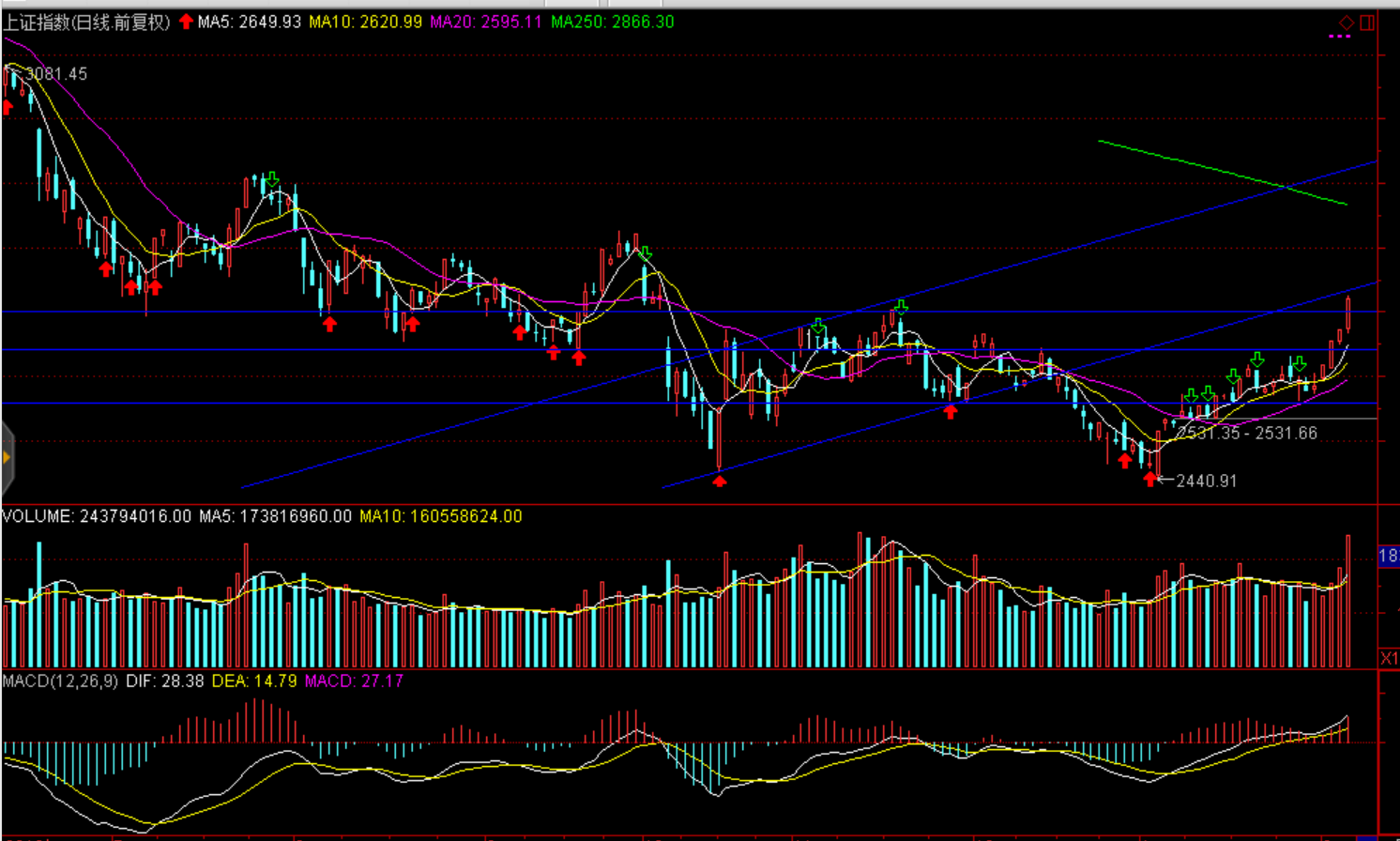 周三兩市股指聯(lián)袂放量上行,上證綜指收漲1.84%報(bào)2721.07點(diǎn)、深證成指漲2.01%報(bào)8171.21點(diǎn),創(chuàng)5個(gè)月新高、創(chuàng)業(yè)板指漲1.91%報(bào)1357.67點(diǎn),站穩(wěn)半年線;兩市成交4741億元,環(huán)比大幅增加1090億元。