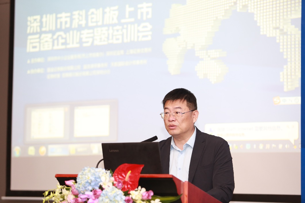 本次培訓(xùn)會由賈長勝局長致開幕詞,賈局長提到, 深圳市中小企業(yè)局一直致力于扶持本地 中小 企業(yè)做大做強(qiáng), 本次培訓(xùn)會旨在幫助 后備 企業(yè)深入了解科創(chuàng) 板制度安排和 政策導(dǎo)向、企業(yè)上市策略及上市流程等方面的內(nèi)容, 助力深圳本地企業(yè)把握歷史機(jī)遇 登陸科創(chuàng)板 ,借力資本市場開創(chuàng)新里程續(xù)寫新篇章 。