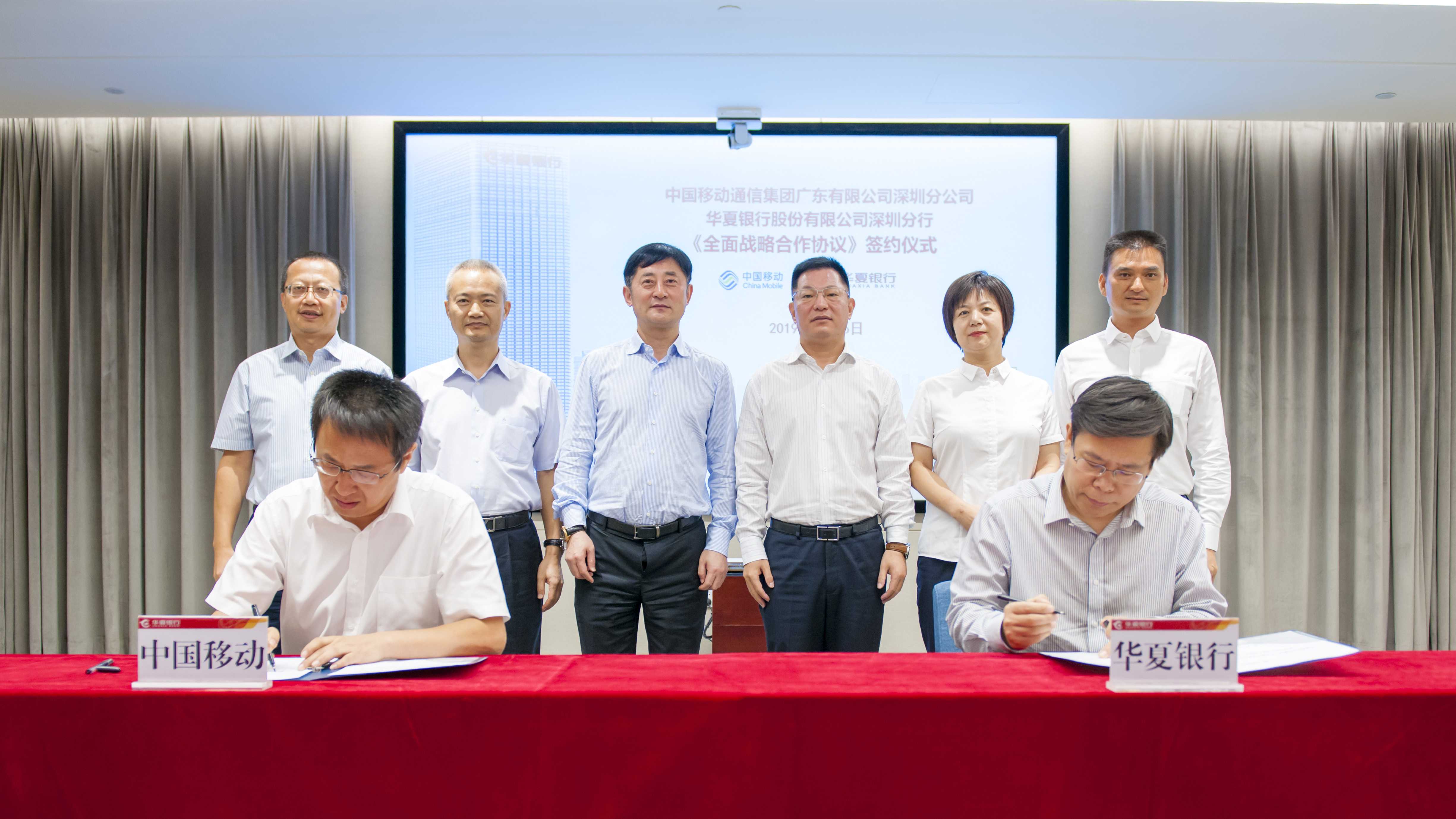 深圳新聞網(wǎng)2019年8月16日訊 近日,華夏銀行深圳分行與中國(guó)移動(dòng)通信集團(tuán)廣東有限公司深圳分公司簽訂《全面戰(zhàn)略合作協(xié)議》,華夏銀行黨委委員、深圳分行黨委書記、行長(zhǎng)陳傳龍與中國(guó)移動(dòng)通信集團(tuán)廣東有限公司黨委委員、副總經(jīng)理祿杰等有關(guān)領(lǐng)導(dǎo)共同見證了協(xié)議簽署。