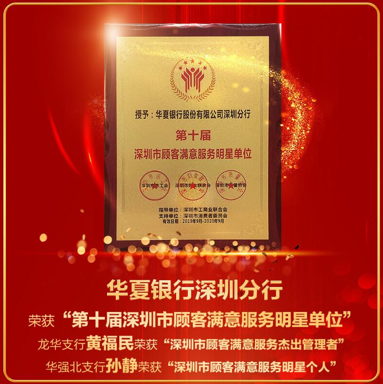華夏銀行深圳分行榮獲“深圳市顧客滿意服務(wù)明星單位”稱號(hào)