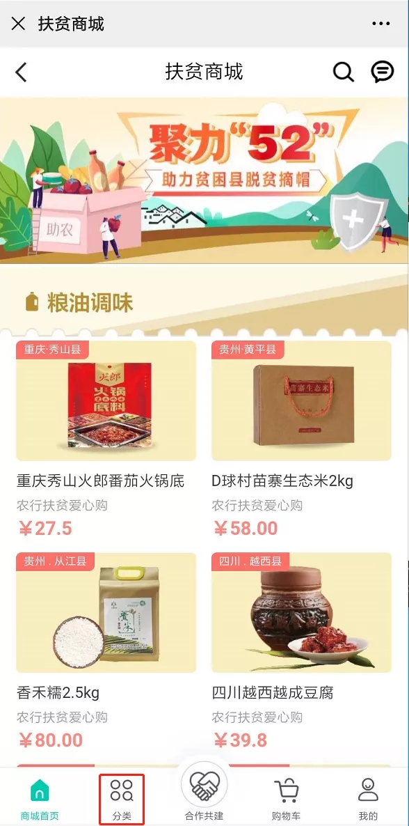 進入“扶貧商城”,點擊“分類”