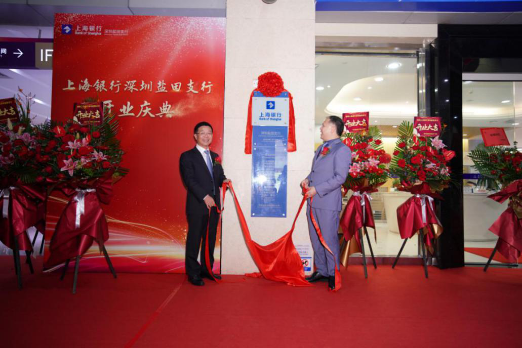 上海銀行深圳分行副行長陳璇強(qiáng)與鹽田支行行長劉源共同揭幕