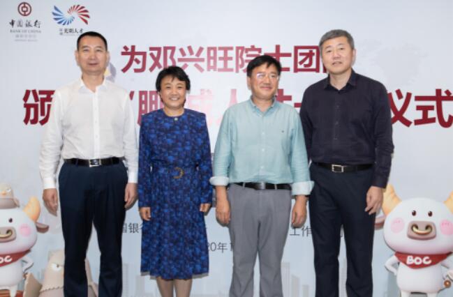 深圳新聞網(wǎng)·見圳客戶端2020年11月8日訊 昨日,深圳市光明區(qū)委常委、組織部部長(zhǎng)繩萬青,中國(guó)銀行深圳市分行副行長(zhǎng)韓竹代表深圳市光明區(qū)人才辦和中國(guó)銀行深圳市分行,為生物學(xué)家、美國(guó)國(guó)家科學(xué)院院士鄧興旺及部分團(tuán)隊(duì)成員頒發(fā)了“中銀鵬城人才卡”鉆石卡,這是全市范圍內(nèi)首張向在深院士發(fā)放的“中銀鵬城人才卡”,標(biāo)志著這張由光明區(qū)人才辦和深圳中行共同策劃推出的人才卡實(shí)現(xiàn)了市級(jí)認(rèn)定的各層級(jí)人才全覆蓋。鄧興旺院士是深圳市杰出人才獲得者、深圳市作物分子設(shè)計(jì)育種研究院院長(zhǎng)、深圳興旺生物種業(yè)有限公司董事長(zhǎng),他帶領(lǐng)團(tuán)隊(duì)2010年到深圳創(chuàng)業(yè),多年來在水稻領(lǐng)域取得兩項(xiàng)重大技術(shù)突破,其中“潔田模式”大規(guī)模市場(chǎng)示范面積達(dá)到50萬畝,有效加快了中國(guó)農(nóng)業(yè)的輕簡(jiǎn)化、現(xiàn)代化步伐。