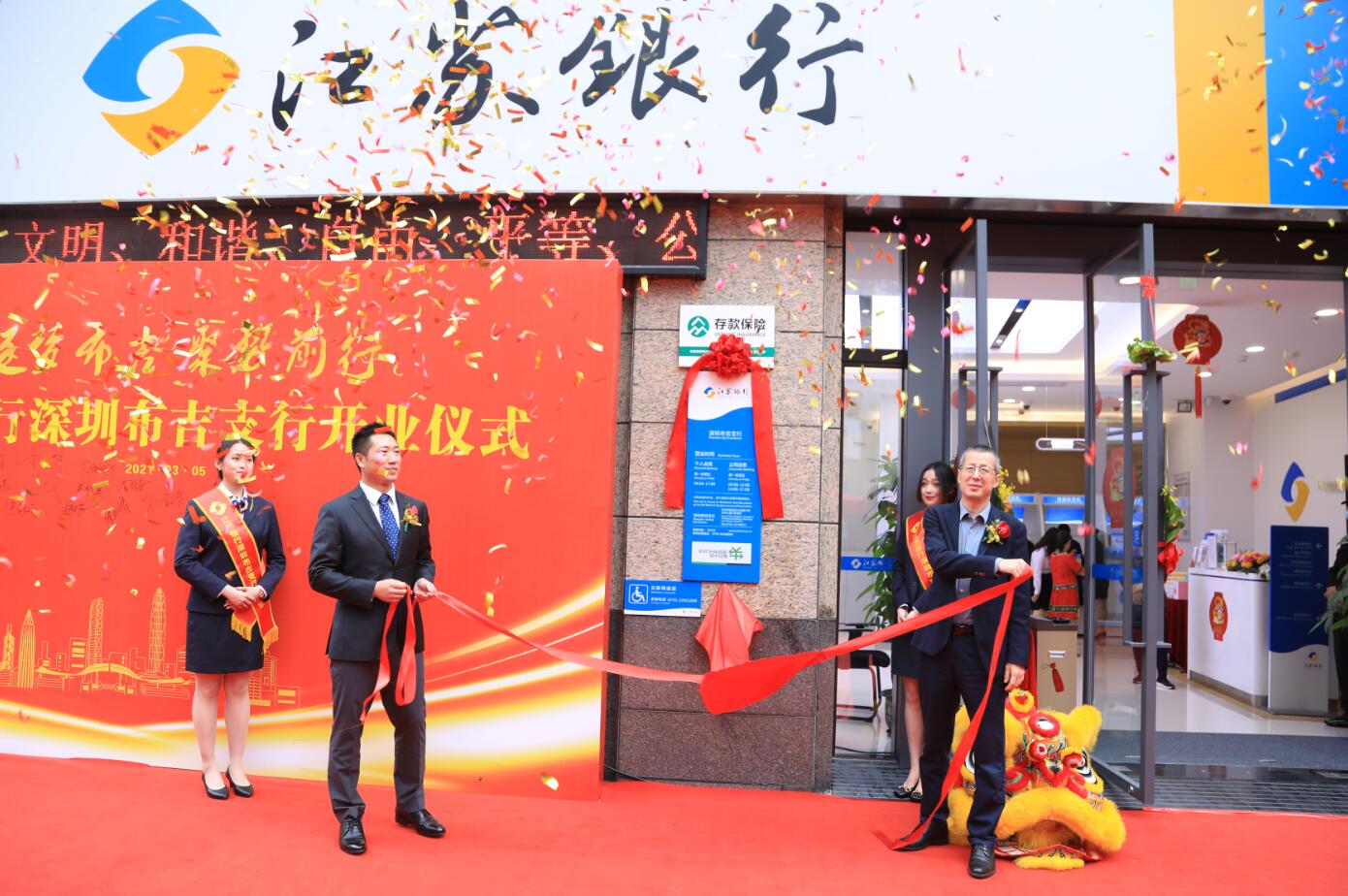 深圳新聞網(wǎng)·見圳客戶端2021年3月5日訊 3月5日,江蘇銀行深圳布吉支行開業(yè)儀式圓滿舉行,龍崗區(qū)金融辦相關(guān)領(lǐng)導(dǎo)、各界企業(yè)嘉賓出席開業(yè)儀式。江蘇銀行深圳分行副行長張慶光與布吉支行負責(zé)人共同為支行揭牌,隨著紅綢的落下,宣告了布吉支行正式揭牌開業(yè),揭開了江蘇銀行深圳布吉支行“逐夢布吉,聚勢前行”的序幕。