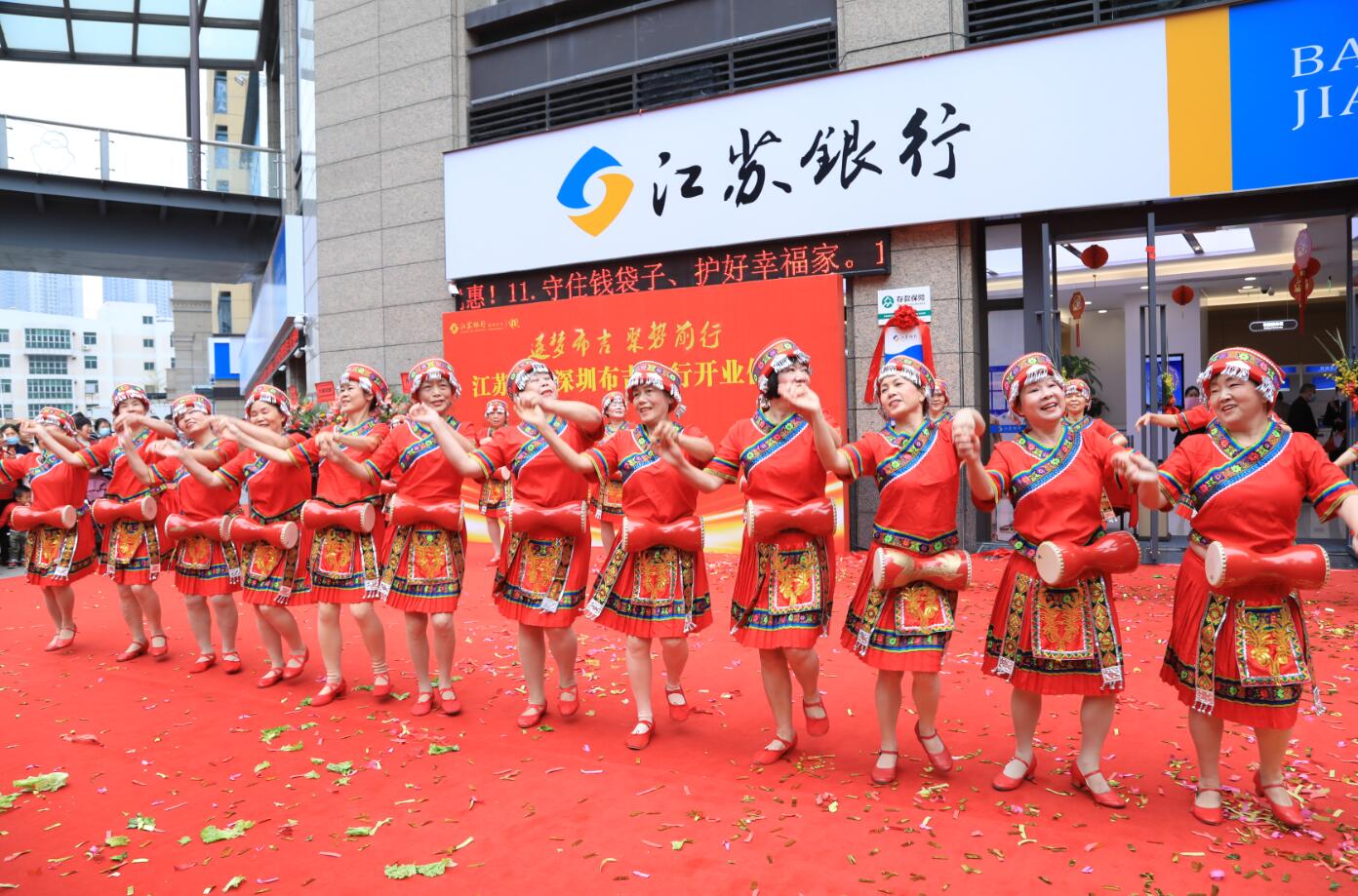 開業(yè)儀式上,羅崗社區(qū)健身服務(wù)示范點的阿姨們也帶來熱情的歡歌炫舞,并為布吉支行送上了“大愛銀行,溫暖人心”的錦旗,感謝江蘇銀行多年來對羅崗社區(qū)的貼心服務(wù),祝愿布吉支行開業(yè)大吉,勇創(chuàng)佳績,希望在未來的日子里,與布吉支行一起攜手并進,共贏未來。