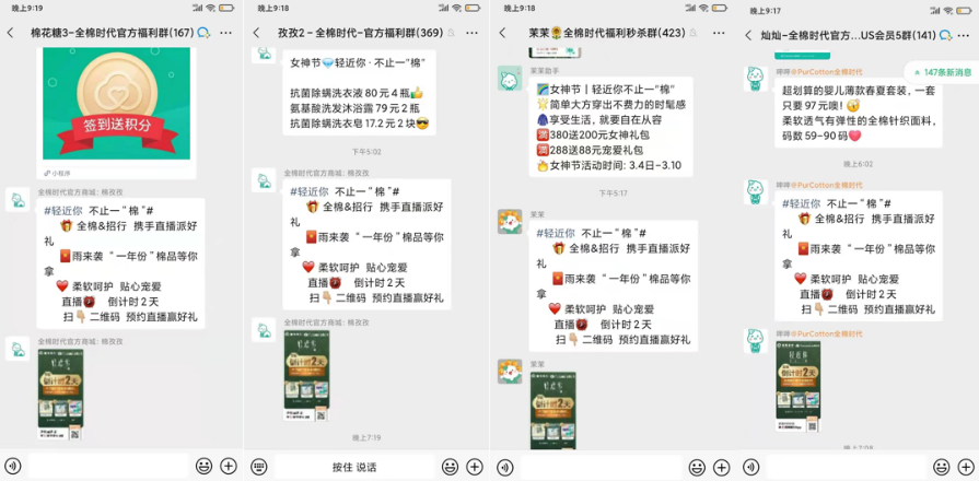 為了提升活動效果以及節(jié)日噱頭,招行深圳分行積極向商戶爭取了全棉時代的直播禮品,直播當(dāng)天全棉時代為招行用戶提供價值50萬的禮品,同時在宣傳端,為了打造活動熱點,全棉時代在超過500個社群內(nèi)進(jìn)行活動推送,招行端也積極爭取總行資源,在App、微信視頻號及朋友圈進(jìn)行宣傳。