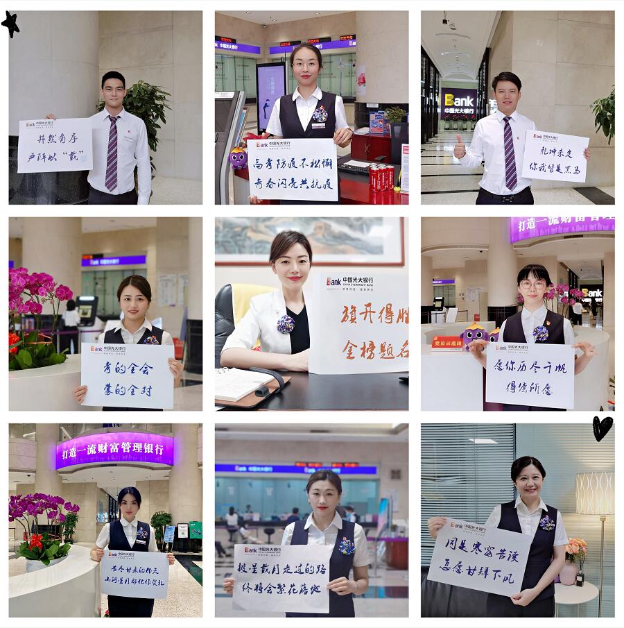 除了在網(wǎng)點提供服務,光大銀行深圳分行還組織員工通過微信朋友圈及周邊宣傳等方式,為高考學子加油打氣,祝福所有的高考學子旗開得勝,金榜題名。這種主動擴大服務范圍、為高考護航的溫暖點滴,是光大銀行深圳分行貫徹落實陽光服務,切實履行金融機構社會責任的一個縮影。