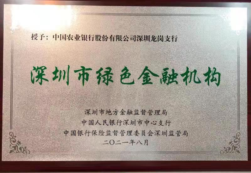 農(nóng)行深圳龍崗支行獲評(píng)深圳首批綠色金融機(jī)構(gòu)