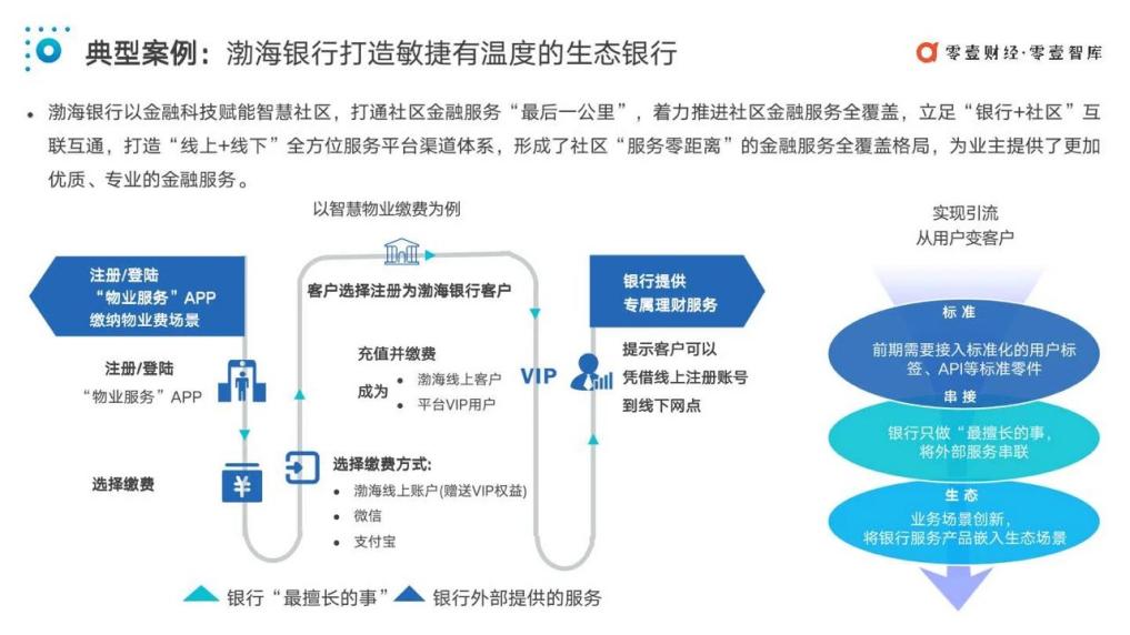 以此次該行入圍行業(yè)權威報告的“智慧物業(yè)”金融科技創(chuàng)新服務項目為例,渤海銀行創(chuàng)新業(yè)務場景——繳納物業(yè)費場景,社區(qū)居民通過“物業(yè)服務APP”繳納物業(yè)費時,可以選擇渤海銀行線上賬戶為付費方式,當用戶充值并繳費后,便同時成為了渤海銀行線上客戶和平臺V IP,并享受銀行提供的專屬理財服務。通過將自身服務產品嵌入“物業(yè)服務”A PP,只做“最擅長的事,渤海銀行將外部服務串聯(lián)”,最終實現(xiàn)A PP用戶到自身客戶的轉變。