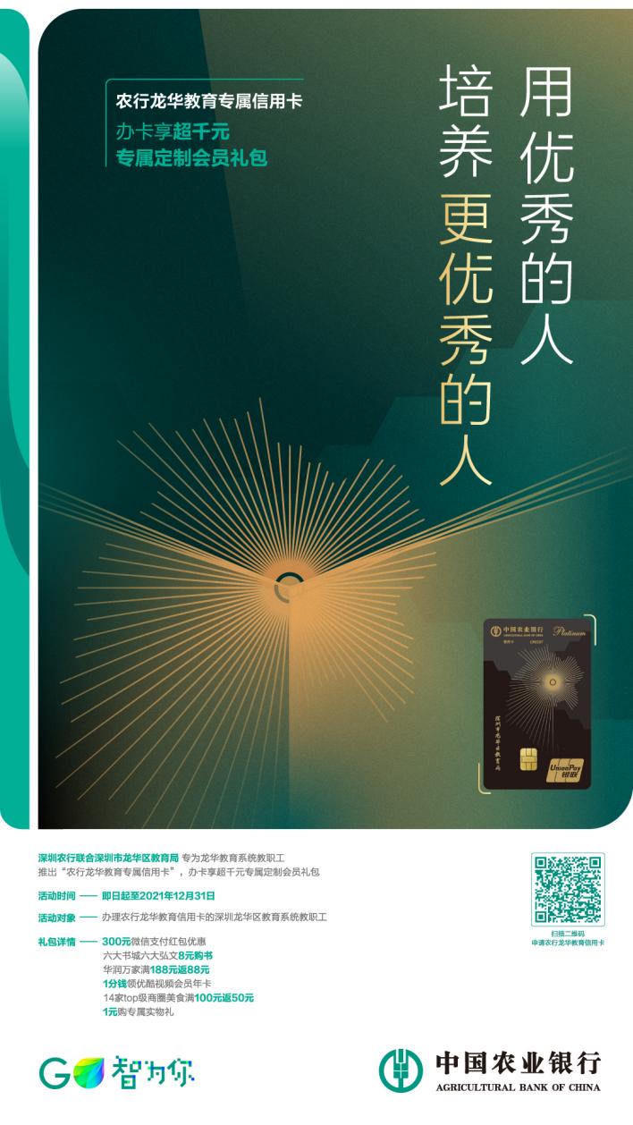 活動對象:辦理農(nóng)行“龍華教育專屬信用卡”的龍華區(qū)教育系統(tǒng)教職工。