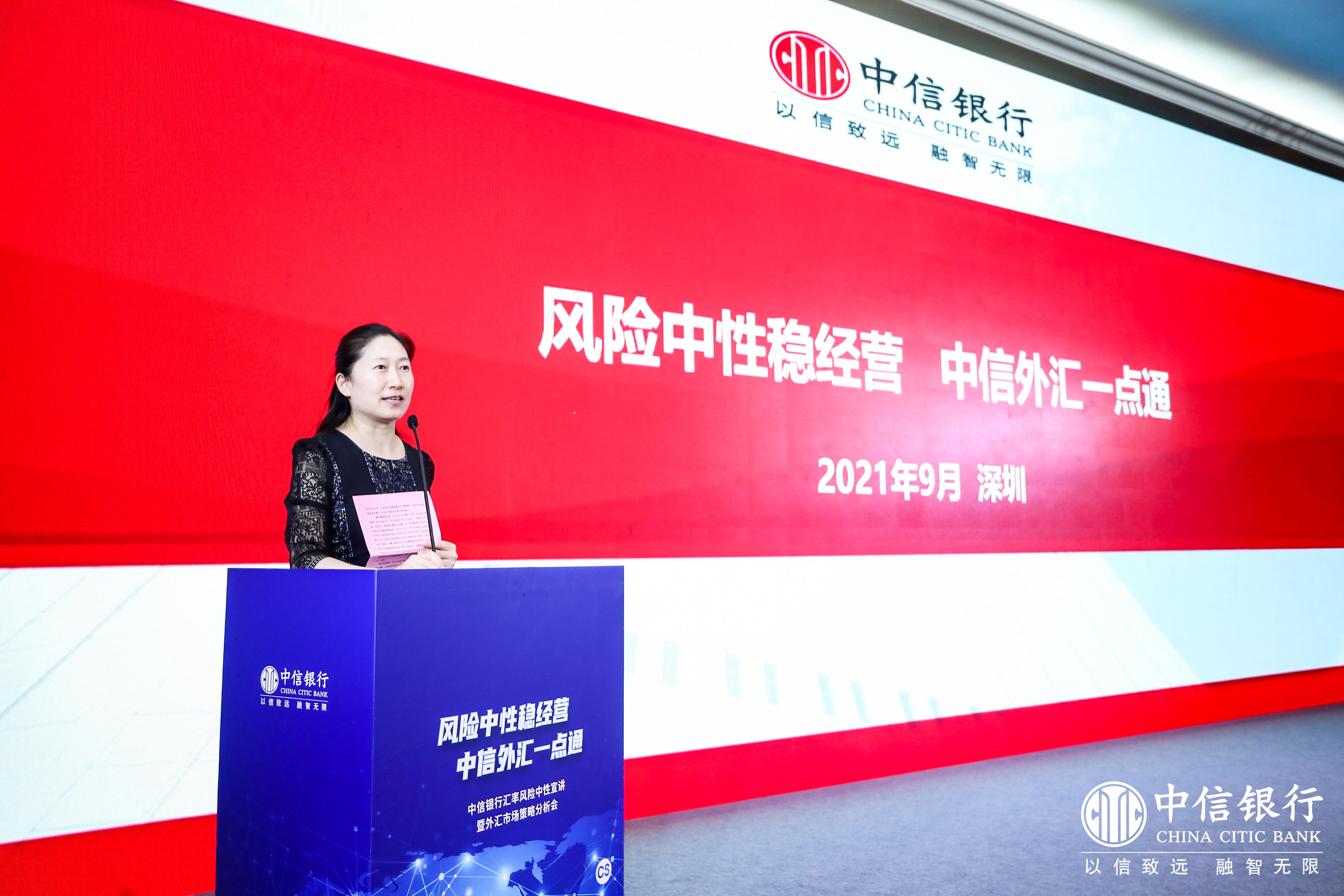 中信銀行國際業(yè)務(wù)部副總經(jīng)理顏穎做了題為《中信銀行履行匯率風(fēng)險(xiǎn)中性社會(huì)責(zé)任》的講話,向企業(yè)傳導(dǎo)了樹立和完善“風(fēng)險(xiǎn)中性穩(wěn)經(jīng)營”理念的重要性。中信銀行外匯專家則為參會(huì)企業(yè)帶來匯率市場的精彩解讀,通過追溯匯市發(fā)展、重點(diǎn)熱點(diǎn)事件解析,向企業(yè)揭示市場邏輯及隱藏風(fēng)險(xiǎn),引導(dǎo)企業(yè)充分認(rèn)識匯率風(fēng)險(xiǎn)管理的必要性。