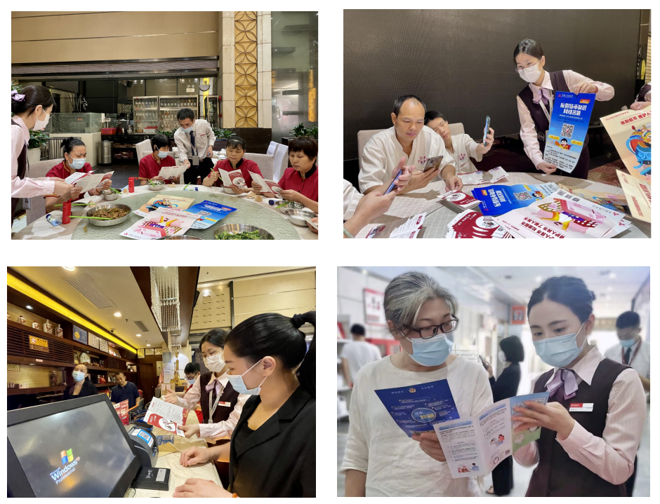 在深圳招行的各營業(yè)網(wǎng)點,成立了“支行守衛(wèi)隊”。依托網(wǎng)點優(yōu)質(zhì)設施資源,各網(wǎng)點通過懸掛主題宣傳橫幅、LED屏幕滾動播放、在廳堂、等候區(qū)、柜臺等醒目位置擺放反假知識宣傳折頁和海報等方式,營造傳統(tǒng)模式宣傳好氛圍。此外,在網(wǎng)點設立的營業(yè)廳小課堂,現(xiàn)場講解現(xiàn)行流通人民幣的票面知識、防偽特征及識別方法;制作“2021海報答題”海報引導市民掃碼,開展答題有禮的方式提高大家的參與積極性,寓教于樂開展了反假幣知識的宣傳。