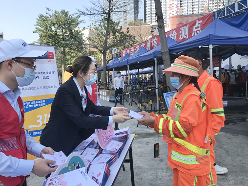 在筍崗街道,社區(qū)工作人員特地在核酸檢測點(diǎn)為環(huán)衛(wèi)工人們設(shè)置“綠色通道”,幫助他們快速完成核酸檢測。考慮到環(huán)衛(wèi)工人們普遍辨別能力較為薄弱,缺乏網(wǎng)絡(luò)與金融相關(guān)知識,容易成為被騙對象,志愿者們一一上前,深入淺出地為他們普及了防范電信網(wǎng)絡(luò)詐騙和非法集資等金融基礎(chǔ)知識,提醒不要輕易將個人信息泄露,讓環(huán)衛(wèi)工人掌握識破騙局的方法。