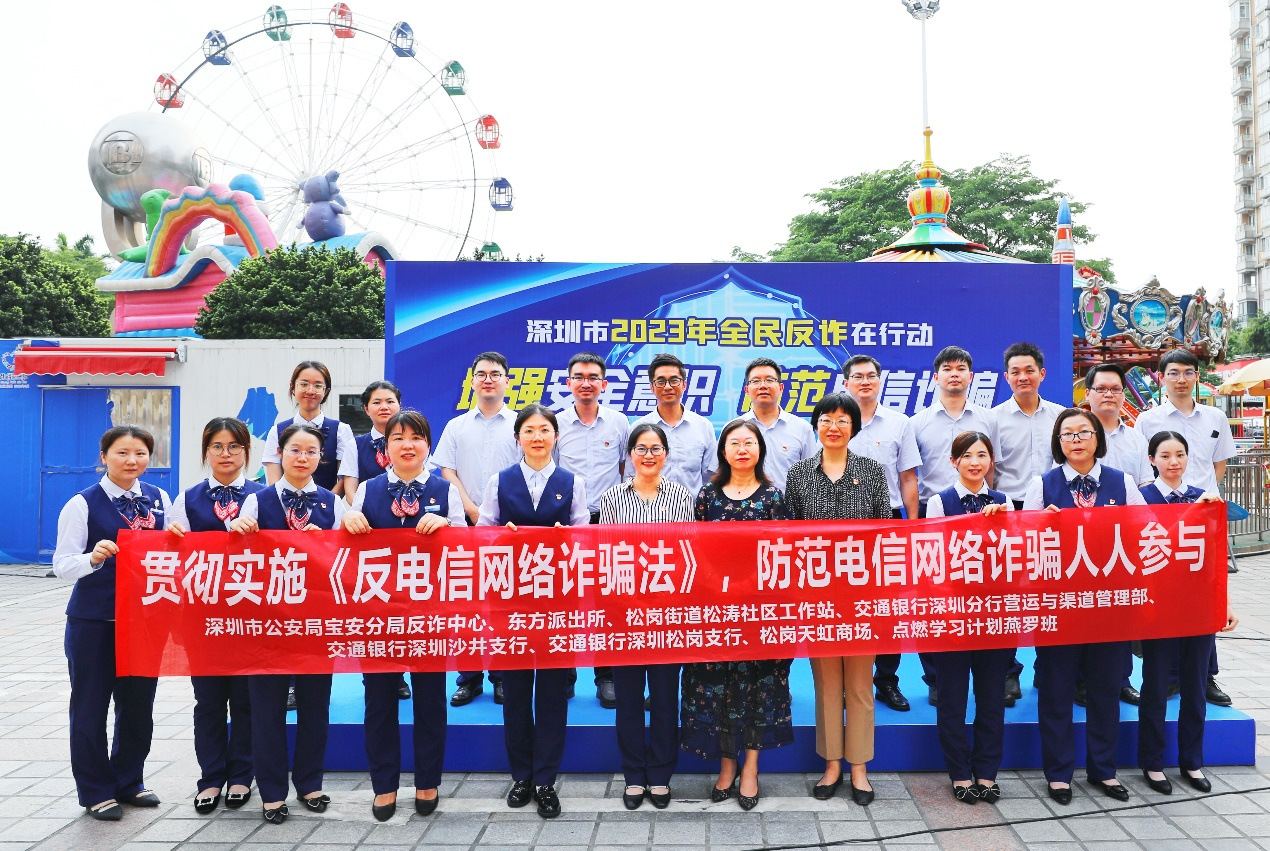 讀特客戶端·深圳新聞網(wǎng)2023年6月1日訊(記者 朱琳 通訊員 張?zhí)駥帲檫M一步提高群眾防范各類電信詐騙安全意識,有效打擊詐騙犯罪,預防和減少電信詐騙案件的發(fā)生,廣泛宣傳落實《反電信網(wǎng)絡詐騙法》,6月1日,交通銀行深圳分行聯(lián)合深圳市公安局寶安分局反詐中心、松崗街道辦、東方派出所、松濤社區(qū)工作站、松崗天虹商場開展了主題為“2023年全民反詐在行動——增強安全意識,防范電信詐騙”的戶外片區(qū)反詐宣傳活動。