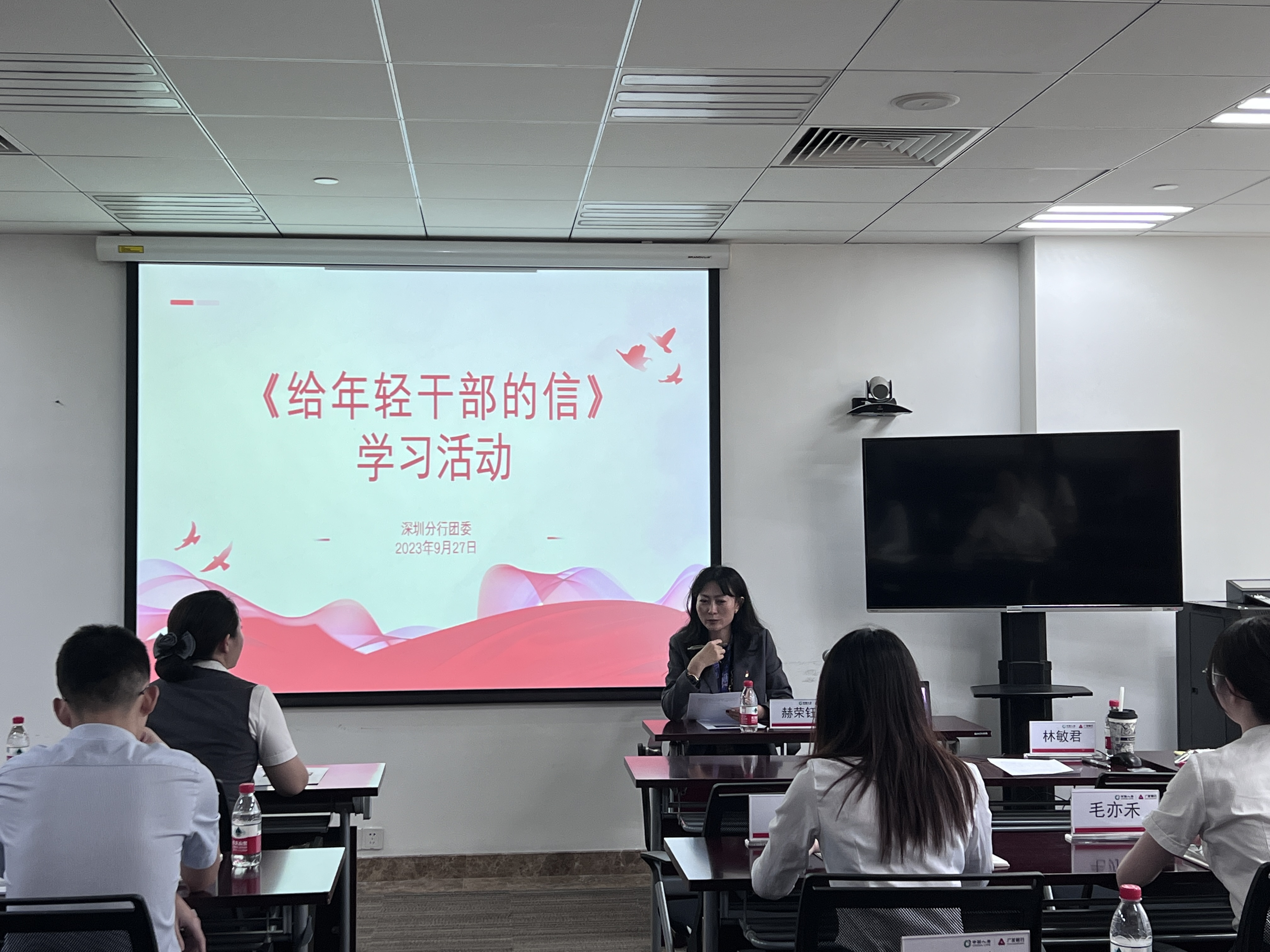深圳新聞網(wǎng)2023年10月17日訊 (記者 朱琳 通訊員 金橋 李華鳳)為深入學(xué)習(xí)貫徹習(xí)關(guān)于青年工作的重要論述,加強團員青年廉潔教育,引導(dǎo)青年永葆心靈的純粹,近期,廣發(fā)銀行深圳分行團委組織開展《給年輕干部的信》學(xué)習(xí)活動,通過線下、線上同步會議的形式與全體團干部共讀共學(xué),各團委委員、團總支書記、團支部書記近50人參加。