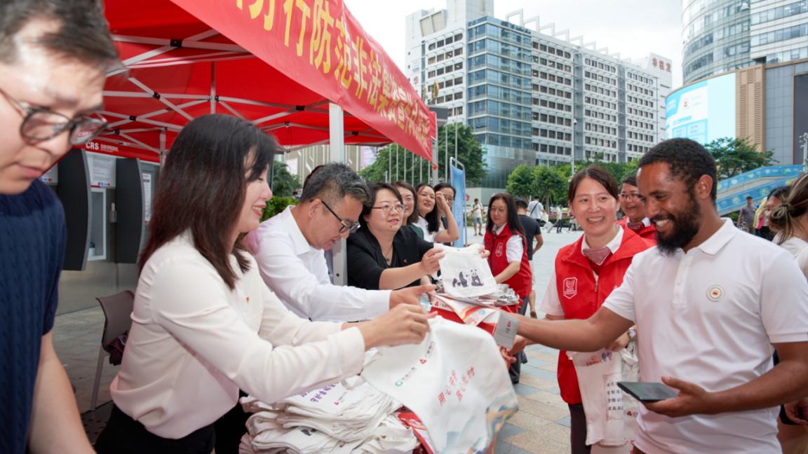活動現(xiàn)場毗鄰中國規(guī)模最大、產(chǎn)品種類最齊全的綜合電子專業(yè)交易市場“華強電子世界”,人流量密集。廣發(fā)銀行深圳分行宣傳志愿者積極向過往群眾分發(fā)“防詐反詐”“金融消費者八項權(quán)益”“反洗錢”“征信知識”“資管新規(guī)”“人民幣真?zhèn)巫R別”等宣傳材料,一對一耐心解答群眾對信用貸款、規(guī)范用卡等業(yè)務(wù)咨詢,并通過講解最新詐騙案例剖析生活中常見金融風險,幫助群眾提升風險識別能力,守好百姓“錢袋子”。